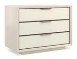 euromodern-inspired. Encased in Almond Milk, three deep drawers have