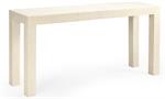 RAFFIA COVERED CONSOLE TABLE IN WHITE, DESIGNED BY JAMIE MERIDA.