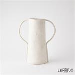 The Rhone Vase is a perfect balance of artistic expression and functional design. Meticulously crafted by skilled artisans, the vase's organic form is beautifully complemented by the bold and striking oversized circle handles. The juxtaposition of delicate curves and statement handles creates a captivating visual contrast, making this vase a standout centerpiece that seamlessly blends artistry and functionality.