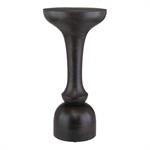 wood, this accent table boasts a rich black finish and a distinctive
