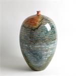 Slip molded Portuguese ceramic in the form of an upside down teardrop. Glazed in a multicolored finish that resembles a watercolor painting.