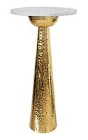 HAMMERED BRASS SIDE TABLE WITH TAPERED BASE AND ROUND WHITE MARBLE TOP