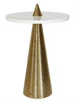 ROUND SIDE TABLE WITH CONICAL COILED BRASS BASE AND WHITE MARBLE TOP
